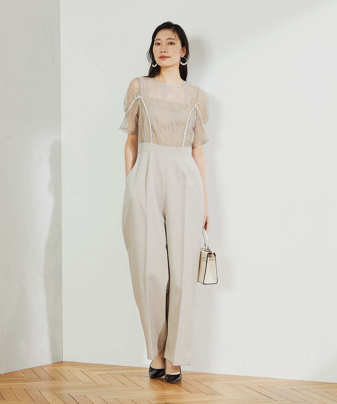 こなれ感のある褒められオールインワン。パイピングが施されたトップのデザインがおしゃれ。