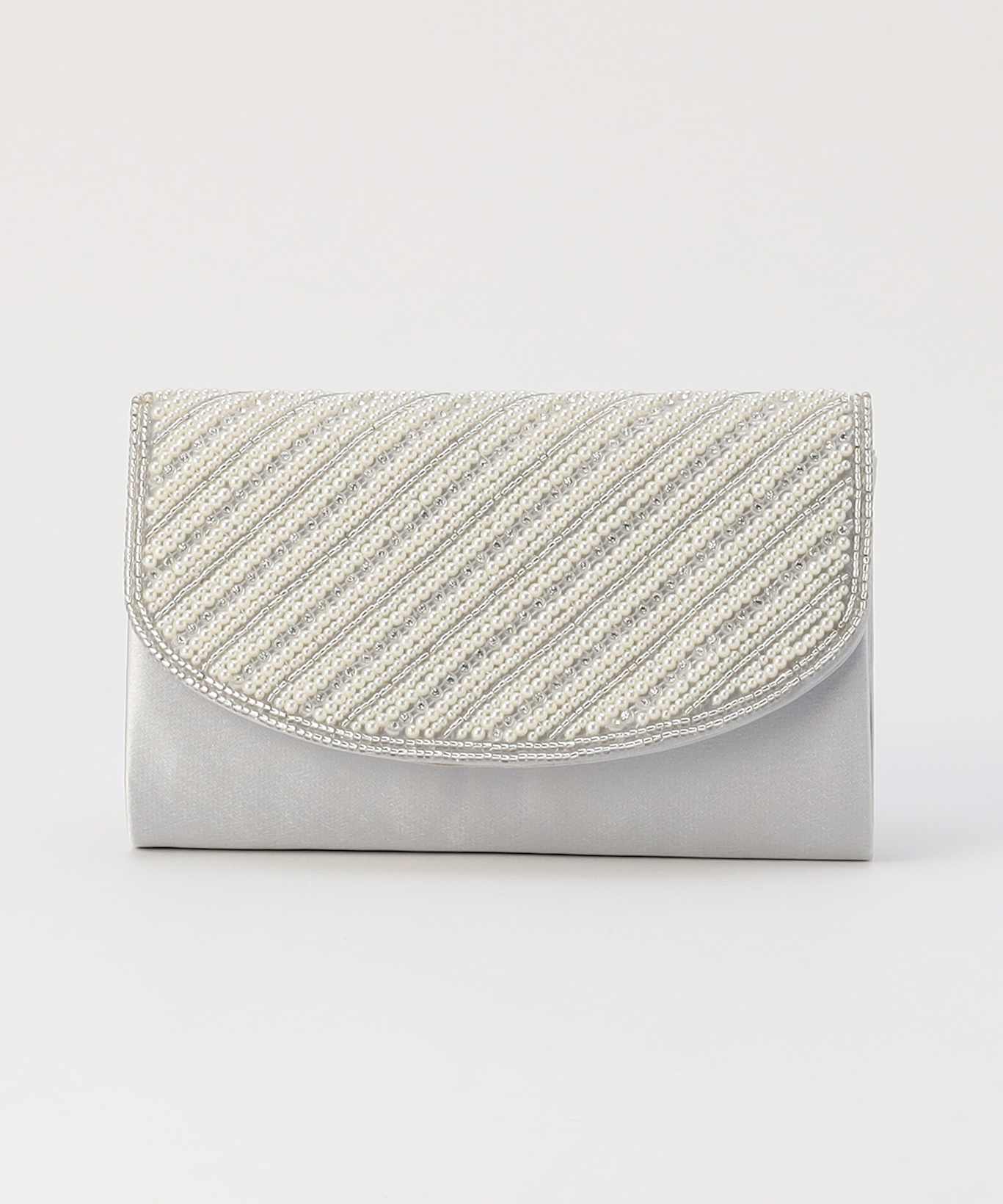 ストライプデザインのビジュー刺繍クラッチ。上品なビジュー使いできちんと見えが叶います。