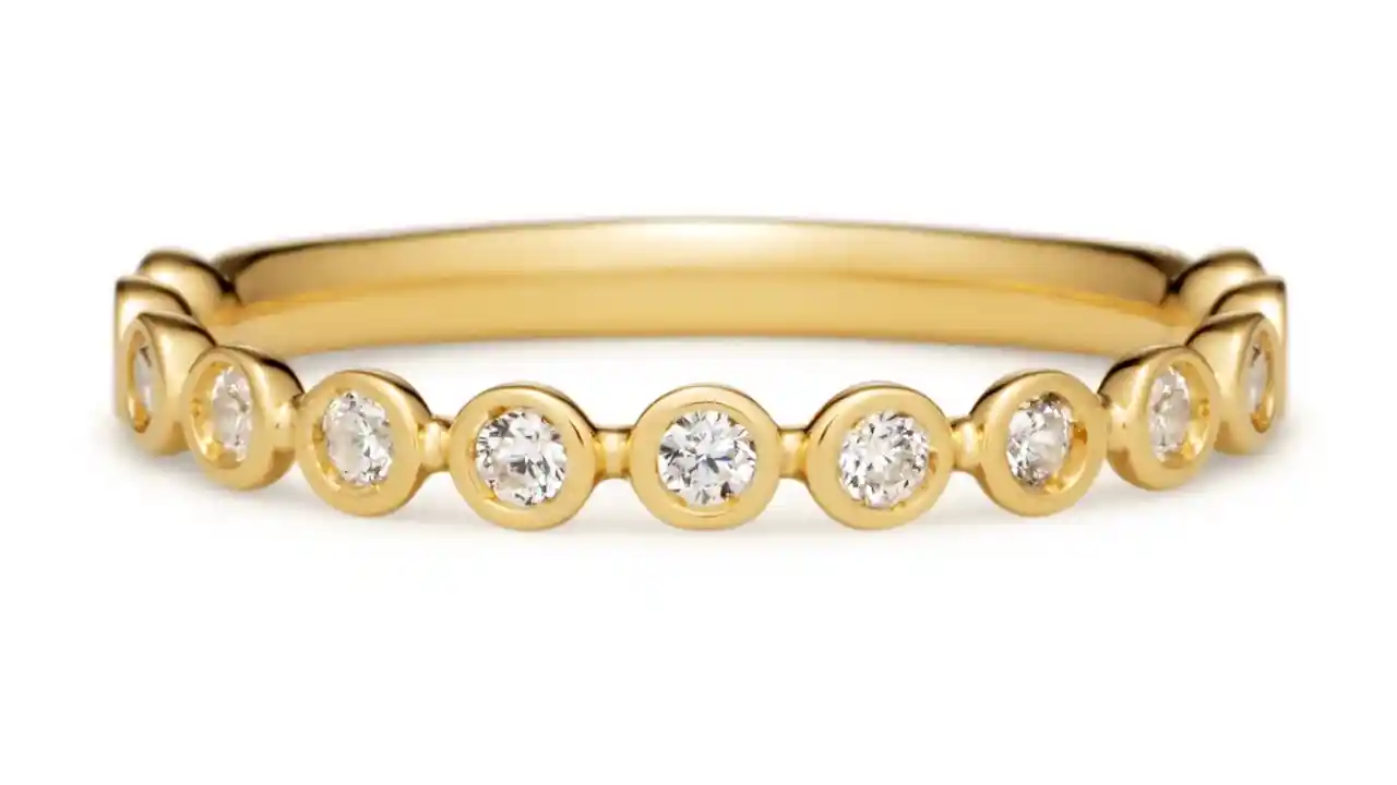 「エタニティやパヴェほど華やかじゃなくていいけど、宝石の輝きで手元に存在感を出したい」という方にぴったりのデザインです。