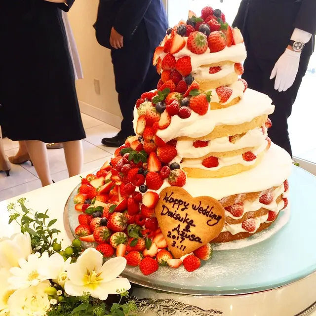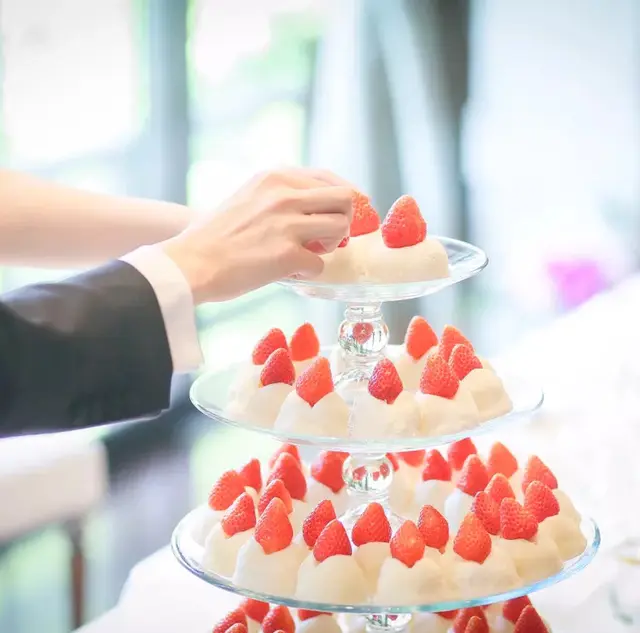 デザートはもちろん、いちごをたっぷりと使ったウェディングケーキが主役!