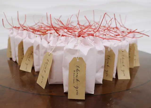 防寒具の脱ぎ着でゲストの手荷物が増えることを考慮して、引き出物は宅配便サービスを手配するのがベター。プチギフトやブーケトスのプレゼントなども、持ち帰りしやすいサイズにする、引換券を渡して後日郵送するなど、荷物にならないようにしましょう。