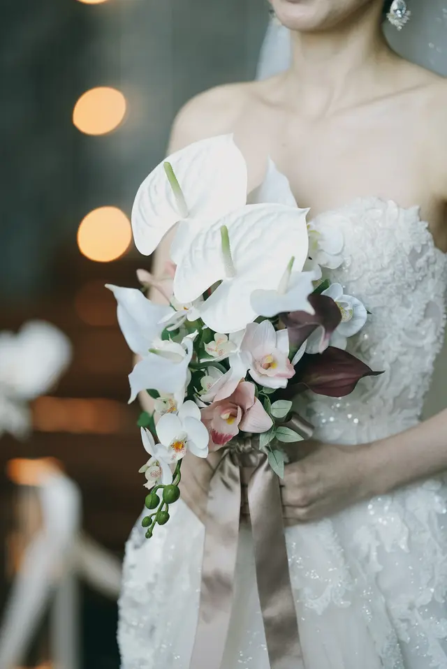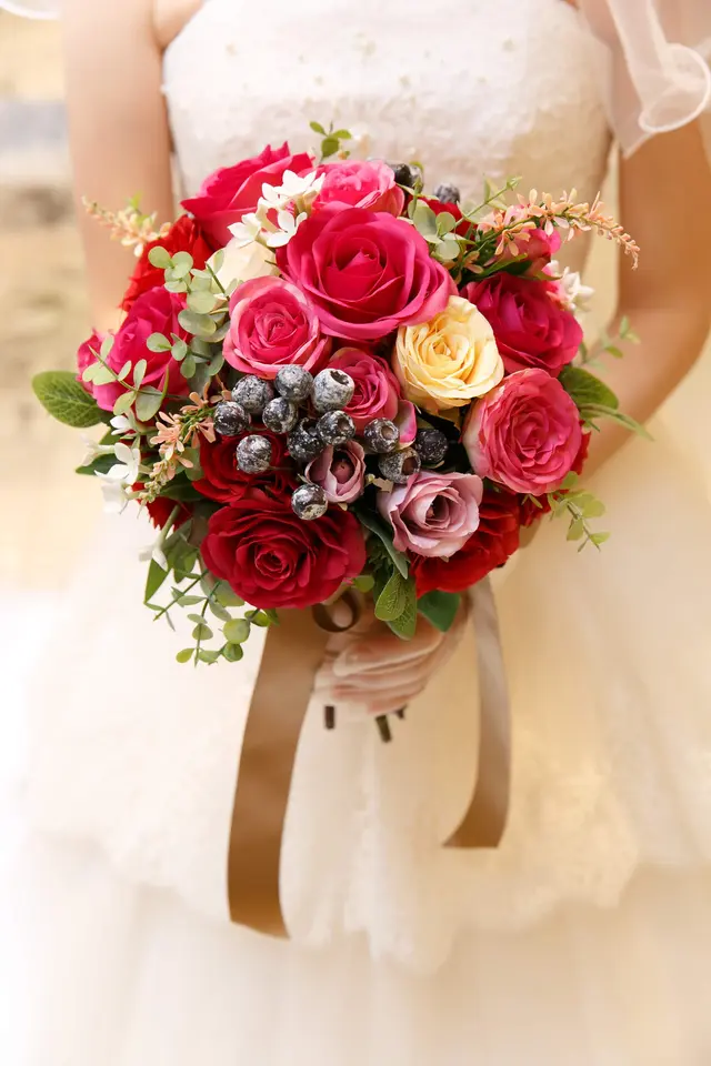 花が少ない真冬はアーティシャルフラワーで理想のブーケを作るのも手。生花では難しい組み合わせもアーティシャルフラワーなら問題なし。事前にデザインを確認できるのもメリットです。