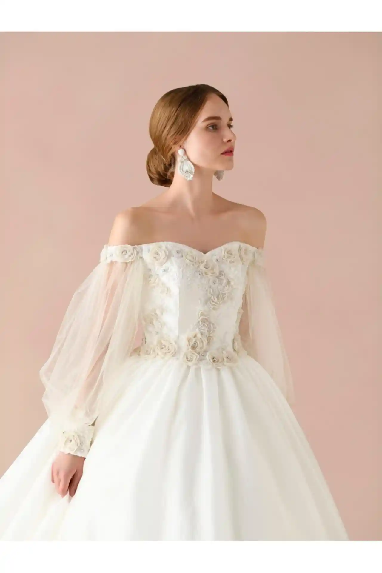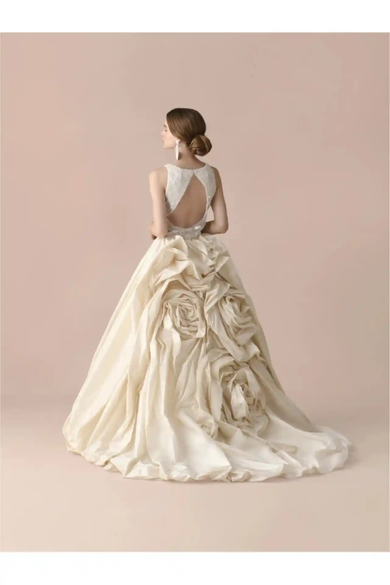 重厚感と高級感を演出するローズモチーフのドレスも真冬の結婚式にぴったり。刺繍で表現した繊細なバラモチーフも素敵ですが、スカート全体や一部がバラモチーフになった大胆なデザインも要チェック!インパクトのあるデザインでゲストの視線を奪って。