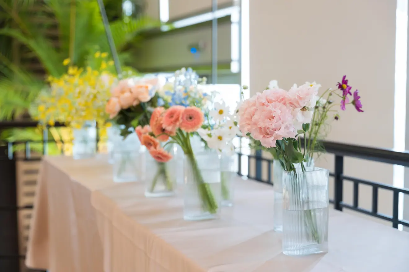 挙式後、ゲストにお花を選んでテーブルを彩っていただきました!