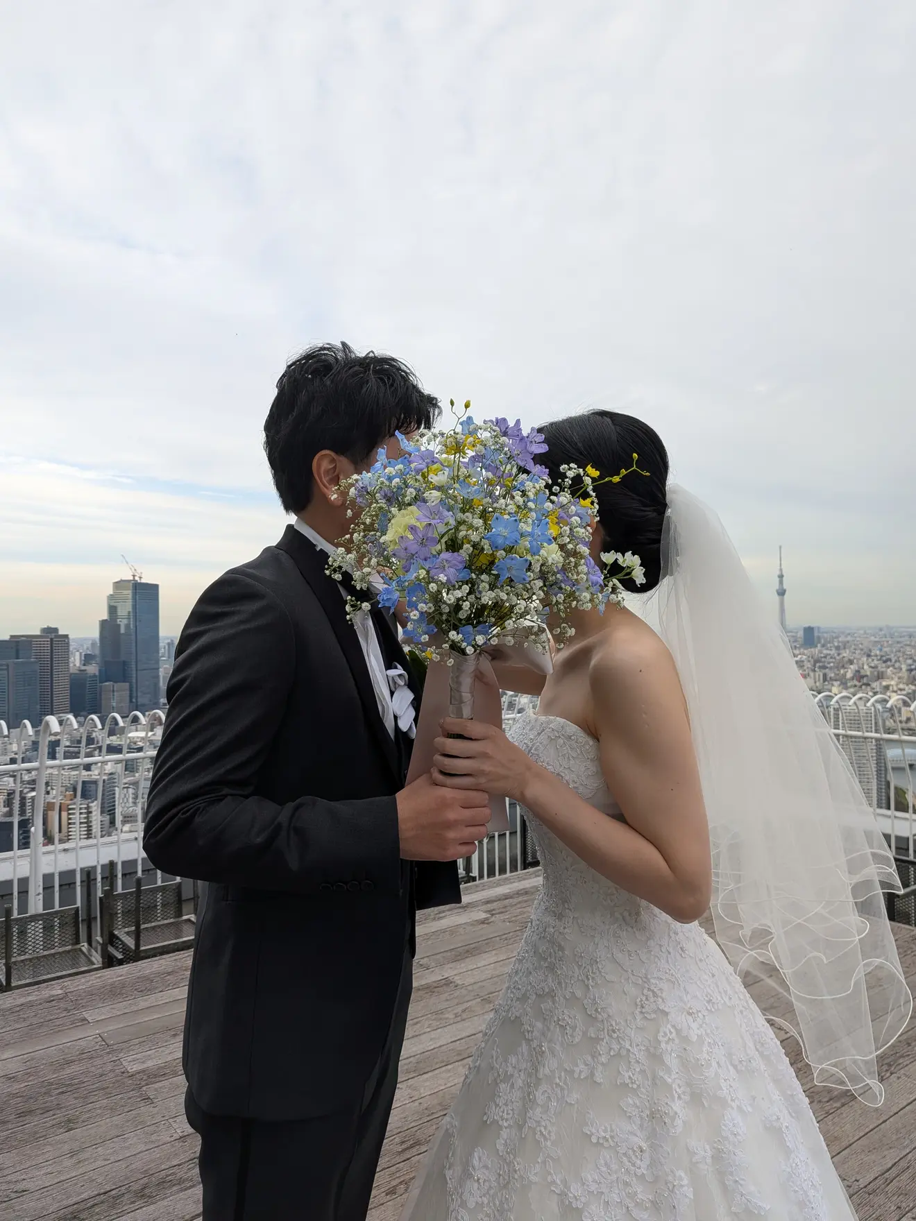 高層階ならではの遮るものがない景色でした。また、もしも雨天強風の場合も室内にチャペルが併設されているため実施は可能です。