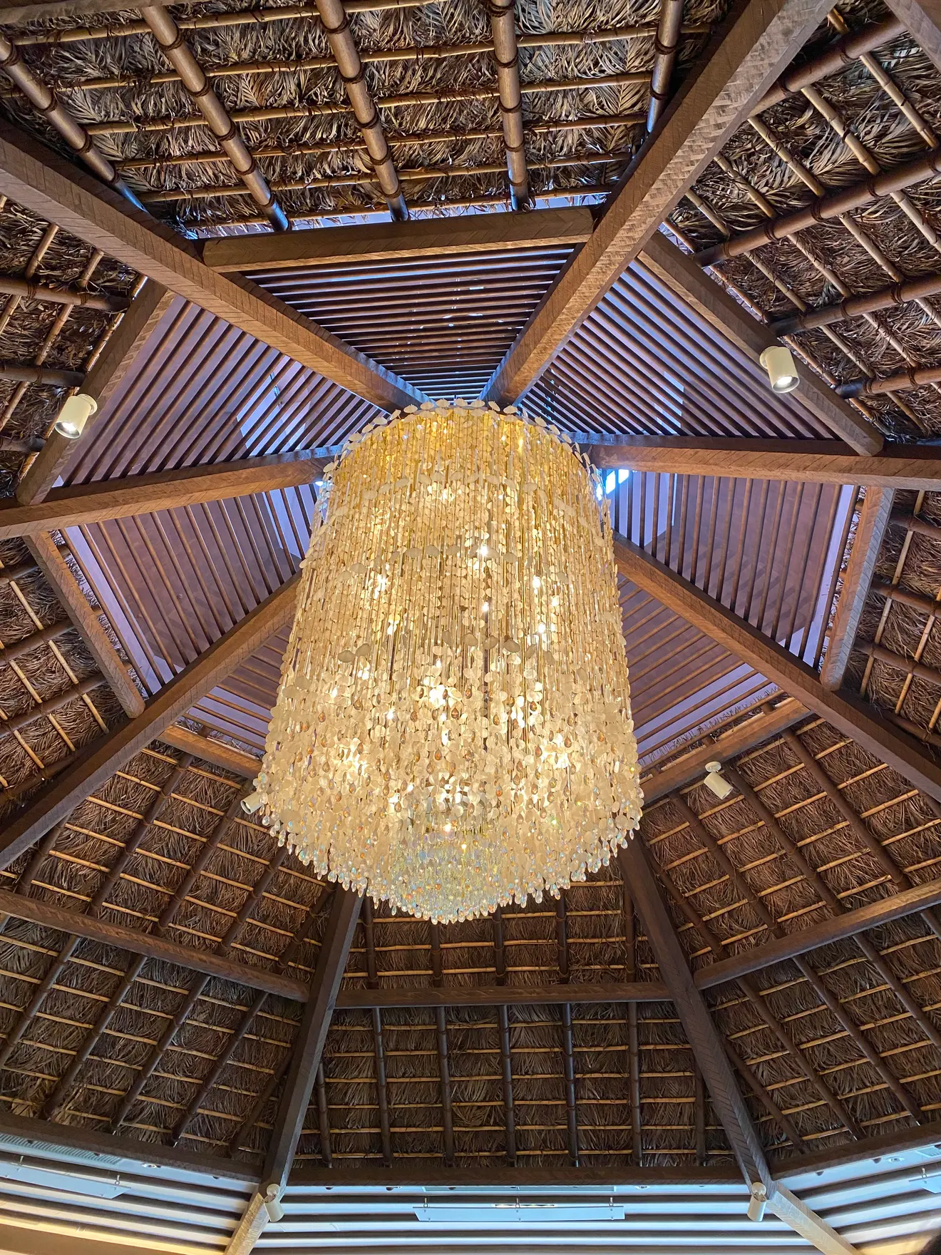 シェルハウスに入ると、ど真ん中に貝のシャンデリア。これがとっても素敵で、シャンデリア自体が装飾のひとつになるので、自分たちでかんがえる装飾類は、少しシンプルめにし、このシャンデリアを引き立てました。