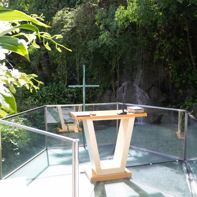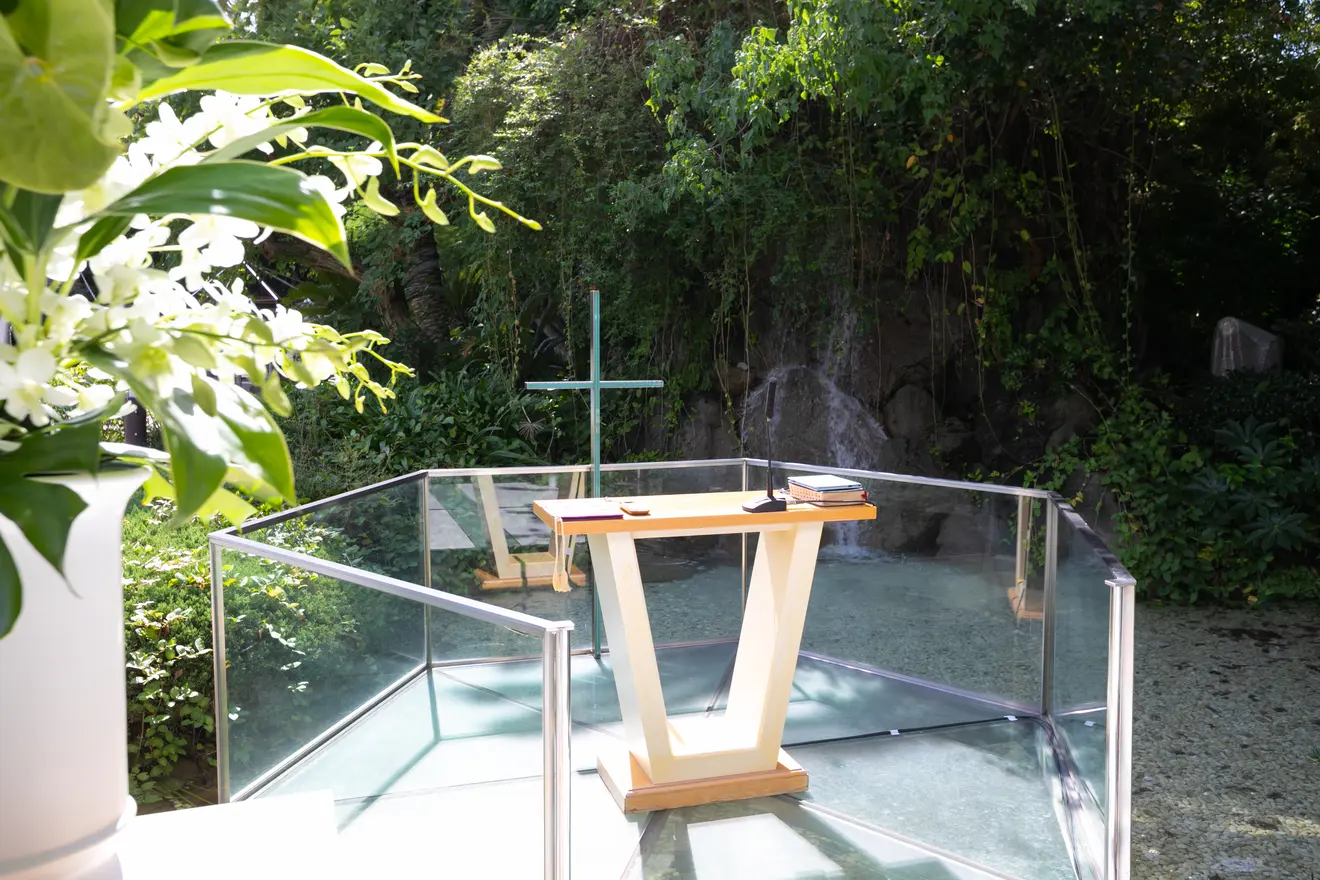 BGMと共に、滝の音が聞こえるので、すごく心地のいい挙式になると思います。