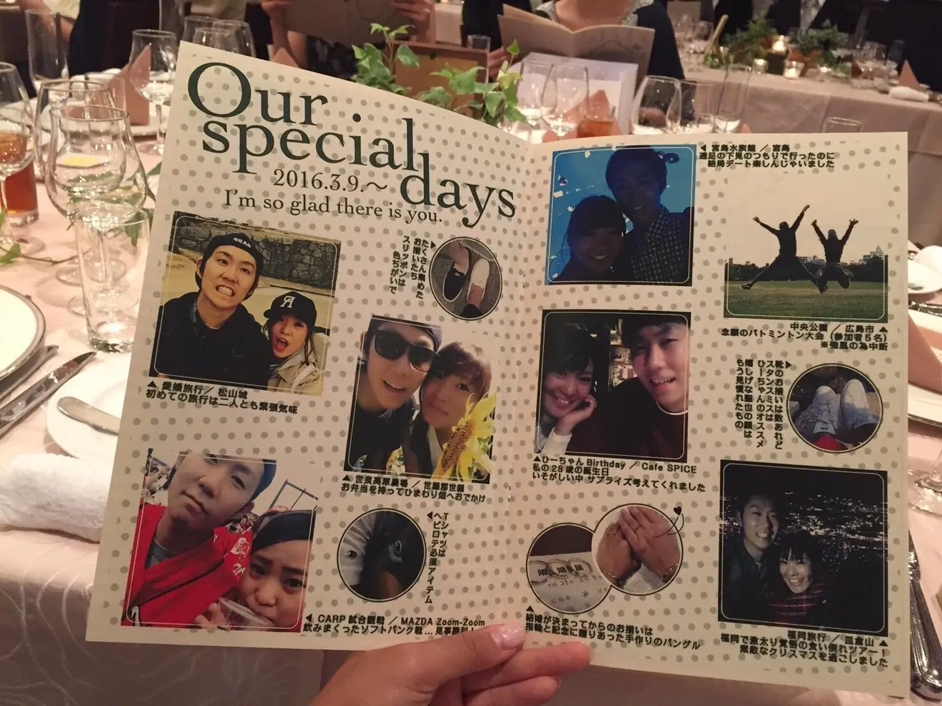 エミュでは2人のデート写真や、友だちや幼い頃からの写真などたくさんの飾ってもらいました!!待ち時間も退屈する事なく、笑顔いっぱい♪