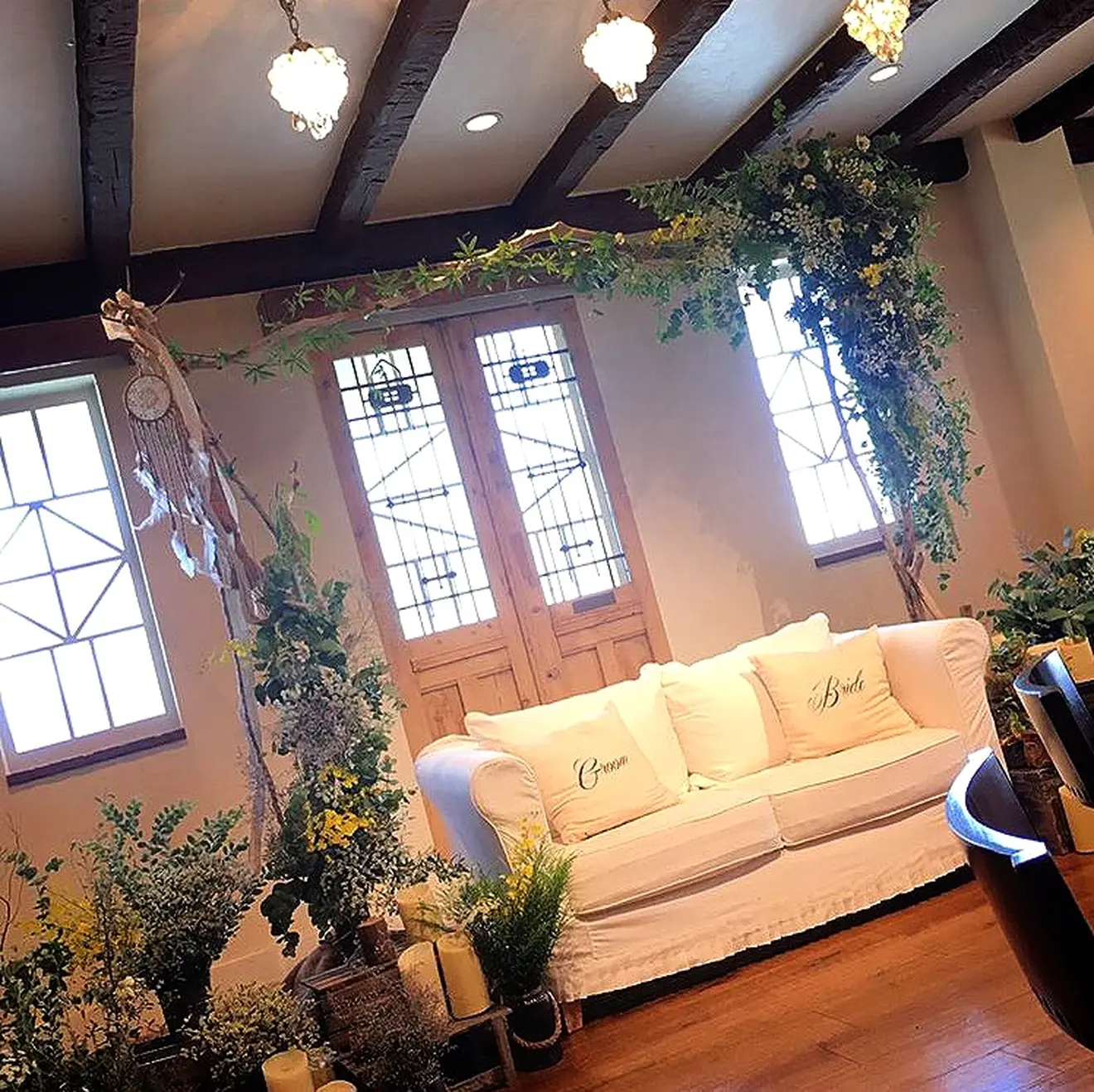 高砂は無しで、憧れのソファーで、海外ウェディング風にしてもらいました!!今までにない感じで、、、と一緒に考えてくださいました*話せば話すだけ相手の気持ちを考えて汲み取ろうとしてくださる、お花屋さん!本当に細かいところまでわがままを聞いてもらいました。