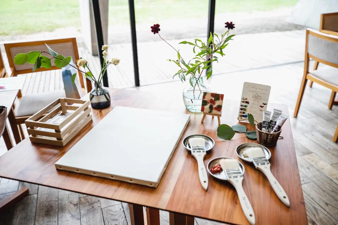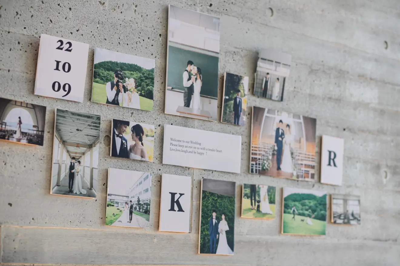 キャンバスに貼ってある、自作の結婚証明書についてお伺いしたいのですが、これらは手書きでしょうか(>_<)?もし、パソコンとかで作成してるのであれば、フォントがとても可愛いので、作り方を教えていただきたいです(><)あと絵の具のカラーも参考にしたいので、教えて頂けませんか(>_<)?沢山聞いちゃってすみません(;_;)