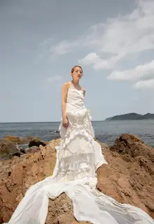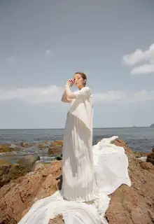 お客様のご希望をお伺いし、デザイナーがデザインデッサンから描きます。 1着で何パターンにもなるドレスや、お母様の思い出の着物やドレスのリメイク、マタニティでも着たいドレスを実現することができます。 式後のアフターフォローも充実。赤ちゃんのセレモニードレスや、ワンピースに作り替えたりと、アイディアは無限です。