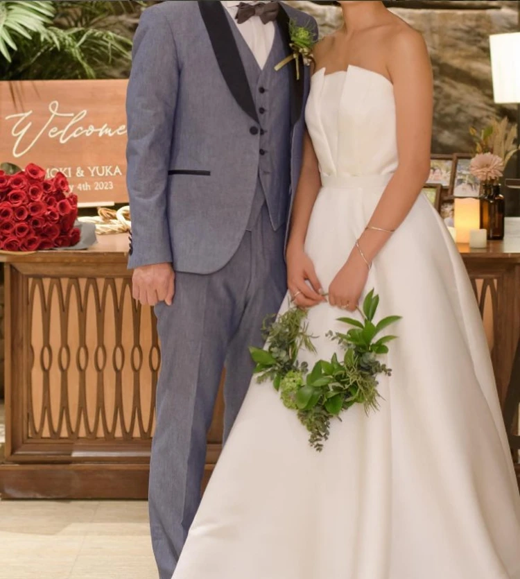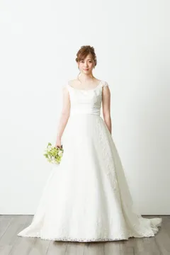 TOPSを2種類作ることでイメージチェンジをお楽しみいただけます。 上品な光沢感あるサテンが、シンプルドレスによりエレガントな花嫁様を演出します。