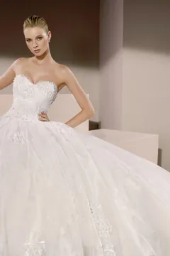 Elisabettaのデザインでは背中も大胆に開いたレースアップデザインでしたが、 日本の花嫁様向けに取り外しのパネルも付けていますので Elisabettaならではのデザインでも、少し露出を押さえたデザインでもご着用いただけます。 また、ブラウスも取り外しが可能で、ハートカットがロマンティックな雰囲気のベアトップデザインとしてもご着用頂けます。