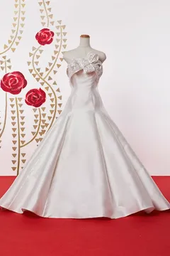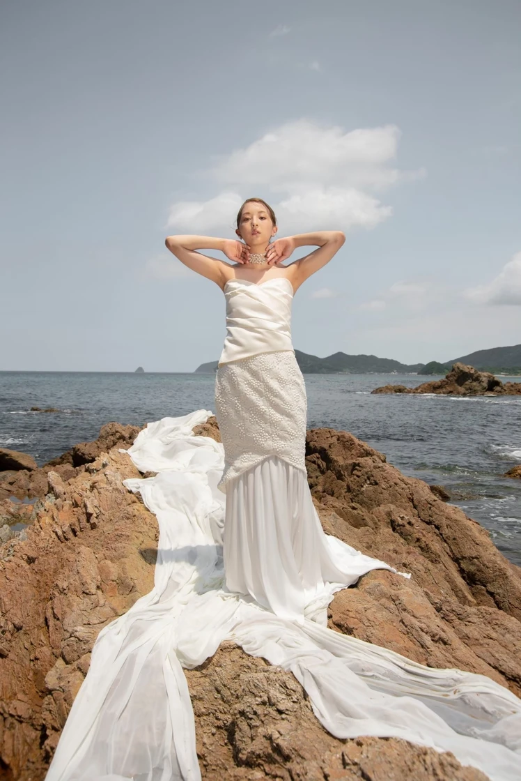 人気のマーメイドラインのスカートを立体感のある 特徴的な柄のレースを贅沢に使用し、全体をリュクスな仕上がりに。