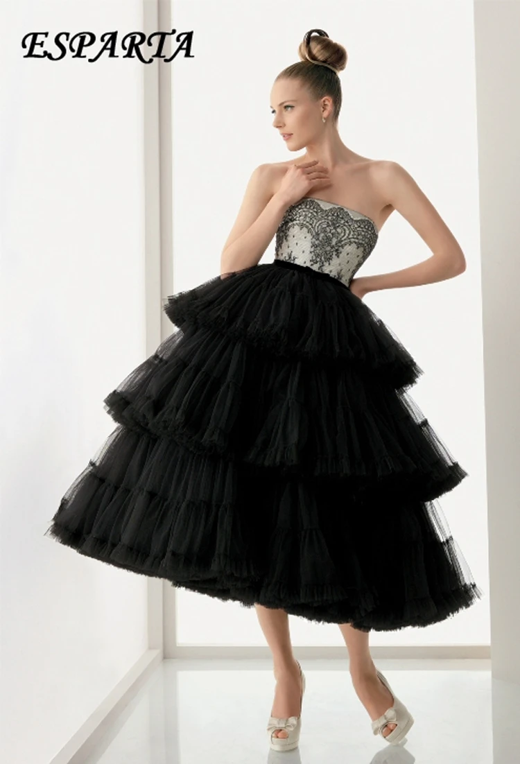 クラシックな魅力と現代的なエレガンスが調和するドレス。 繊細なレースが施されたビスチェが女性らしさを引き立て、ブラックチュールのティアードスカートが動きに合わせて美しく揺れます。ミモレ丈のシックで軽やかなシルエットが特別なイベントにぴったり。シンプルなアクセサリーを合わせることで、洗練されたスタイルがさらに際立つ一着です。