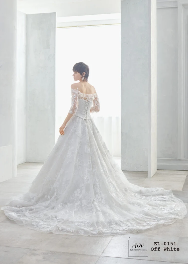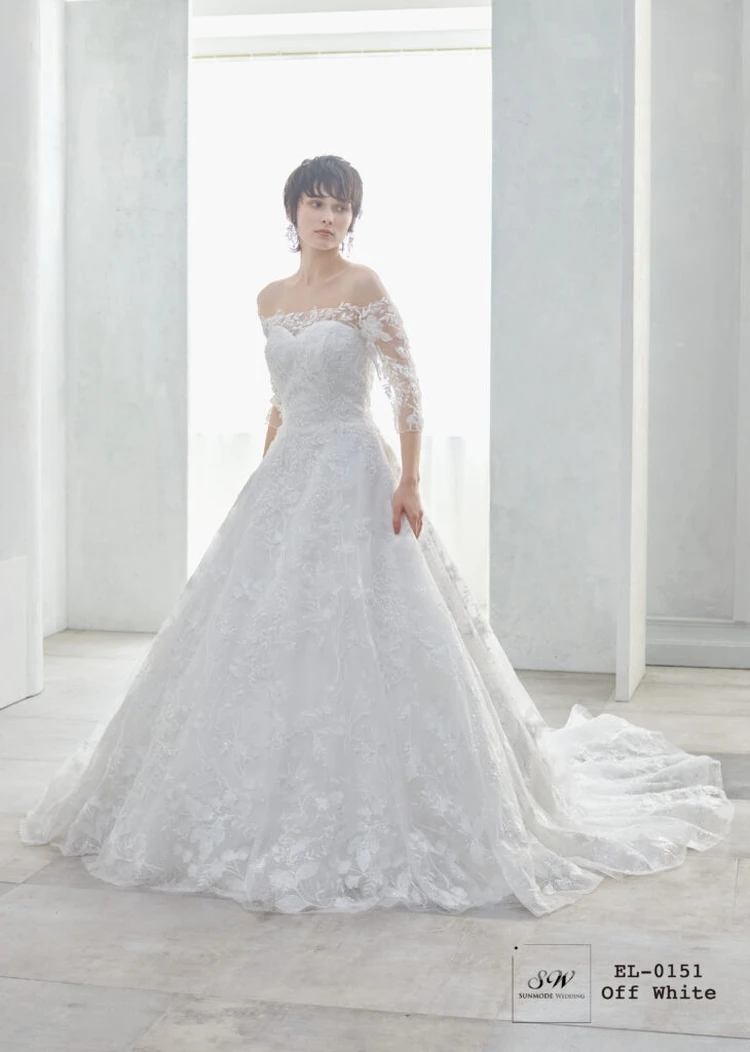 付属のレーススリーブを合わせれば、クラシカルで気品のあるスタイルにアレンジ可能。挙式ではスリーブを付けて厳かな雰囲気に、披露宴ではビスチェで軽やかにと、シーンに合わせて表情を変えられる2WAY仕様です。王道の美しさと華やかさを兼ね備えた一着は、どの世代からも愛される花嫁姿を叶えます。