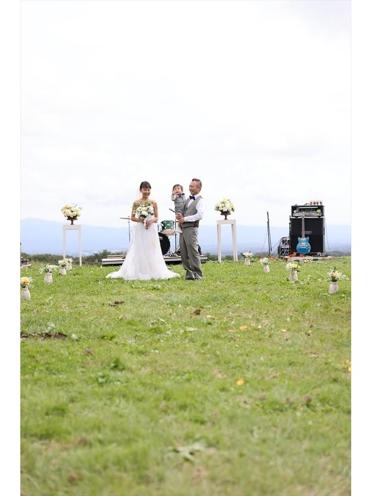 ガーデンは眺めが最高!!那須を一望できます。本当に気持ちの良い場所で、その景色にほれ込んで会場を決めました。