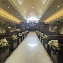挙式会場のバージンロードは大理石で自然光も入るので明るかったです