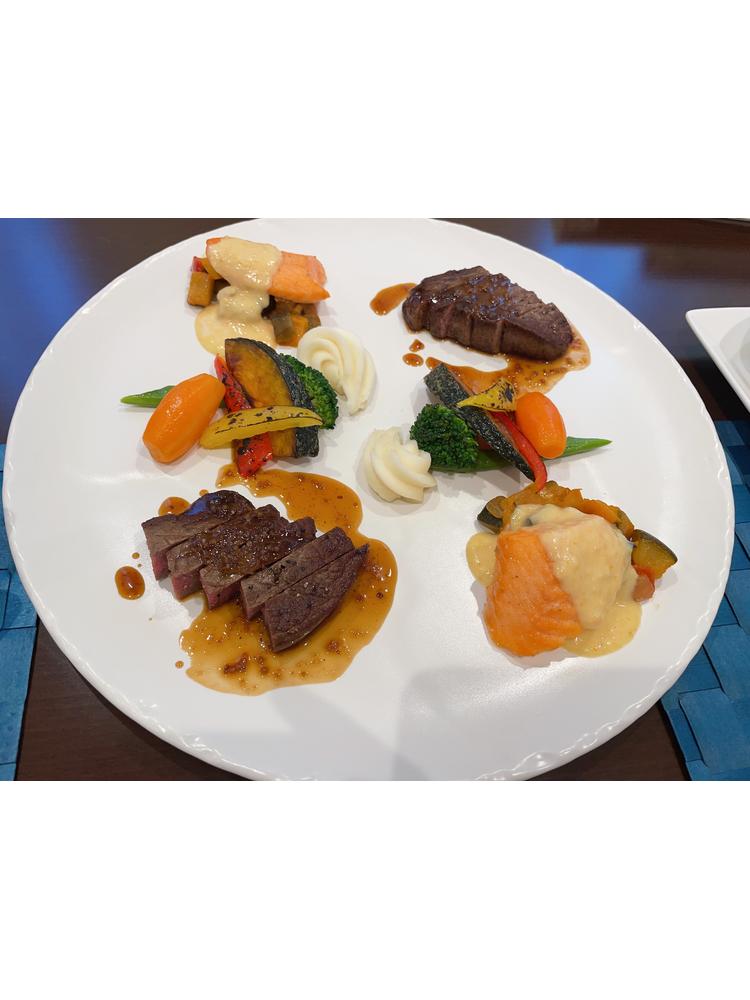 メイン料理とパンの試食をいただきました。お肉が少し硬かったです。味付けは美味しかったです。