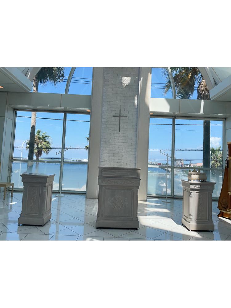 外観や壁など少し古いかな?と思いましたが中はとてもきれいです。チャペルは明るくて天井も高く素敵でした。青いバージンロードが印象的でした。披露宴会場は2つあり、どちらも見学しました。大きな窓があり、海が見えて良かったです。私はリップルという会場がかわいくて好みでした。