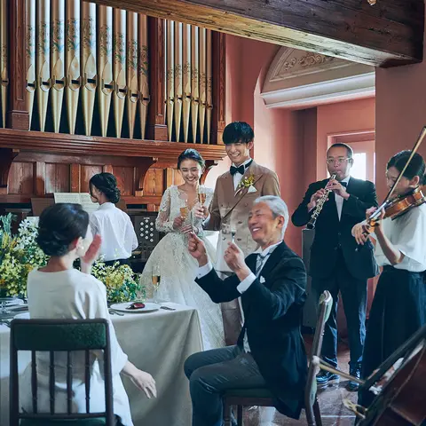 10名の音楽家が奏でる美しい音楽と芸術が織りなすマーガレットならではのセレモニーが叶う。