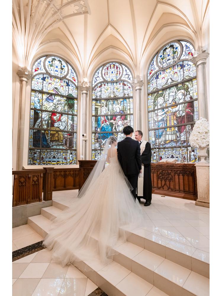 100年の時を刻むステンドグラスが輝く「セントグレース大聖堂」で憧れの本格大聖堂挙式。指輪交換からはじまるストーリーが描かれたステンドクラスは祭壇のおふたりに重なり、堂内は深い感動に包まれます。セレモニー後の披露宴はスタイルの異なる3つの貸切邸宅でアットホームなパーティーを。表参道駅から徒歩2分の好立地も魅力です。