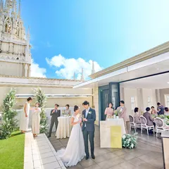 100年の時を刻むステンドグラスが輝く「セントグレース大聖堂」で憧れの本格大聖堂挙式。指輪交換からはじまるストーリーが描かれたステンドクラスは祭壇のおふたりに重なり、堂内は深い感動に包まれます。セレモニー後の披露宴はスタイルの異なる3つの貸切邸宅でアットホームなパーティーを。表参道駅から徒歩2分の好立地も魅力です。