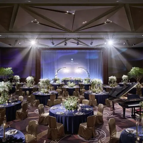 六本木にほど近い溜池山王駅徒歩5分、都心に建つラグジュアリーホテル「ANAインターコンチネンタルホテル東京」。白で統一されたダイヤモンドをモチーフにしたチャペルやホテル内の神殿での挙式が可能。高級感のあるロビーでのフラワーシャワーも。最大180名まで収容できる雰囲気の異なるバンケットはおふたりのご希望にあったスタイルで大切な方へのおもてなしを叶えます。
