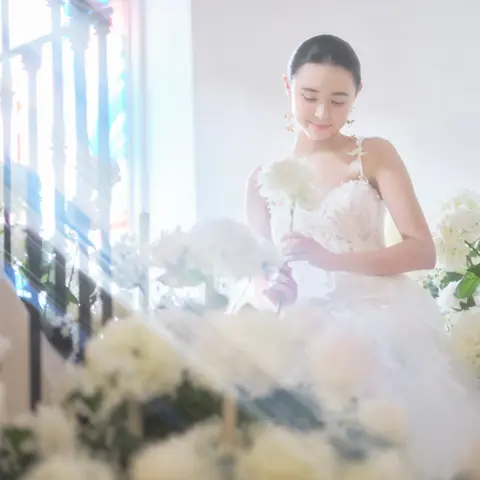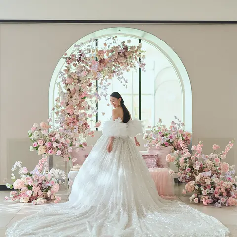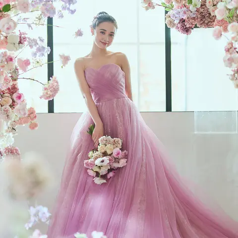 ドレスの取り揃えは都内屈指!初めてのご見学の方限定で、お好きなカラードレスを1着分プレゼント!