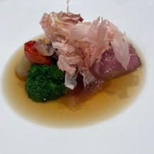 和とフレンチを融合したキュイジーヌだからというのもあるのか(この辺は説明がありませんでしたが)お肉料理をスープ仕立てにするという試みもさながら、とはいえ一体感があり、お肉料理としての満足感もありで驚かされる一品でした。