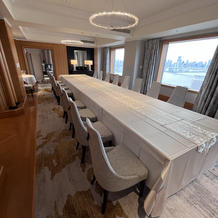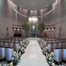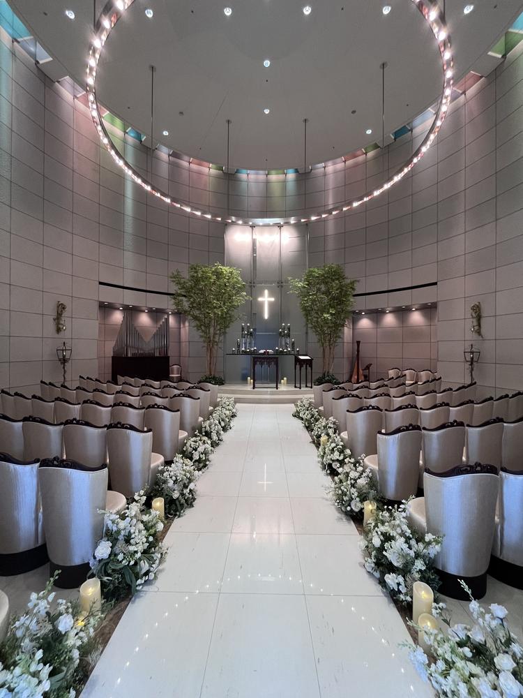 挙式のチャペルはルミエール、披露宴は28Fのロイヤルスイートルームを利用しました。チャペル近くには結婚式のための設備がコンパクトにまとまっており、我々新郎新婦にとっても参列者にとっても移動がしやすかったです。チャペルは屋内のルミエールを利用したため天気に左右されず、事前のイメージ通りの挙式ができ大満足です。バージンロードの長さも十分でした。