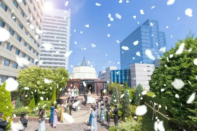 池袋駅前という立地なのに、チャペル前のガーデンでバルーンリリースができるとのことでぜひ取り入れたいと思いました。