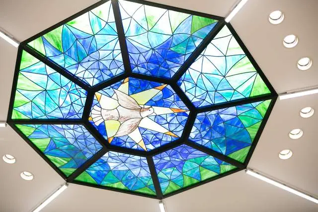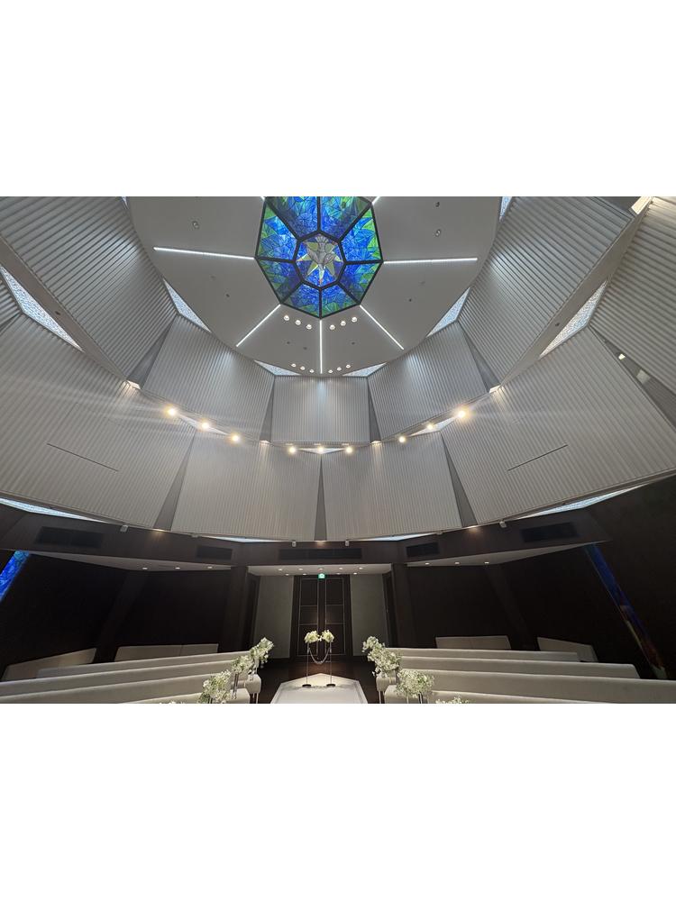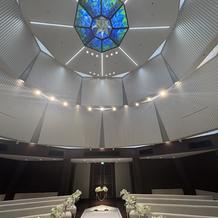 チャペルの天井が自然光も入ってステンドグラスが麗出て行けた。