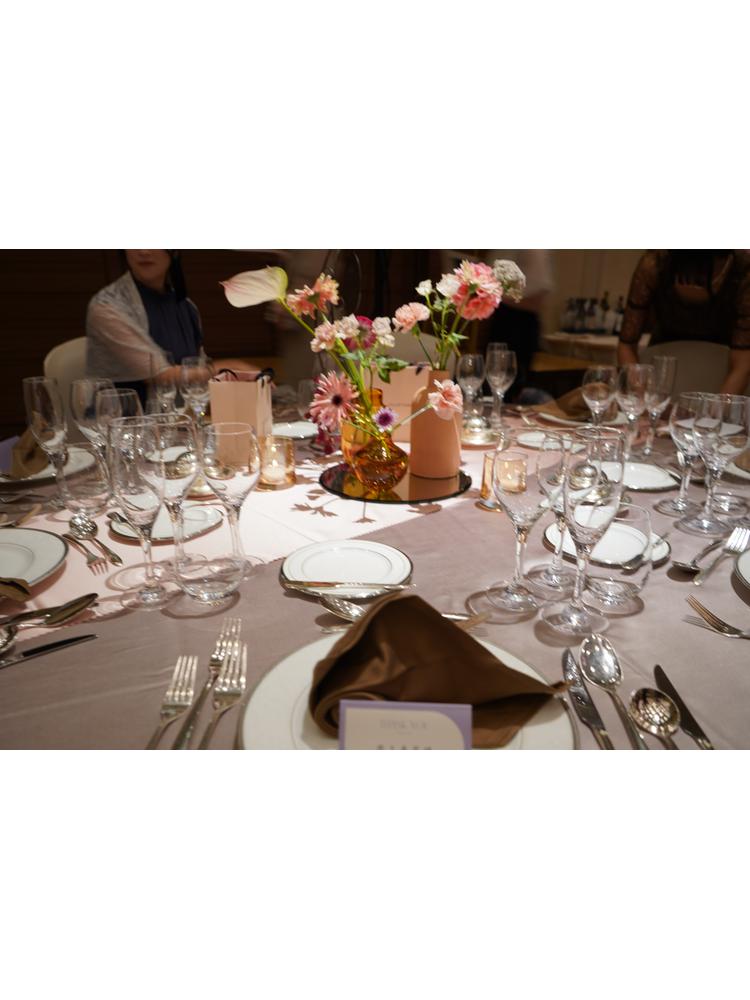 歓談の時間を多くとりたかったため、演出は上記のみでごく短くしましたが、代わりにケーキカットで演出を入れて盛り上げる事ができました。ケーキバイトも、直前の打ち合わせで新郎新婦が同時に行うことを決めたのですが、時間短縮することで、歓談タイムでゲストと沢山写真を撮ることができました。