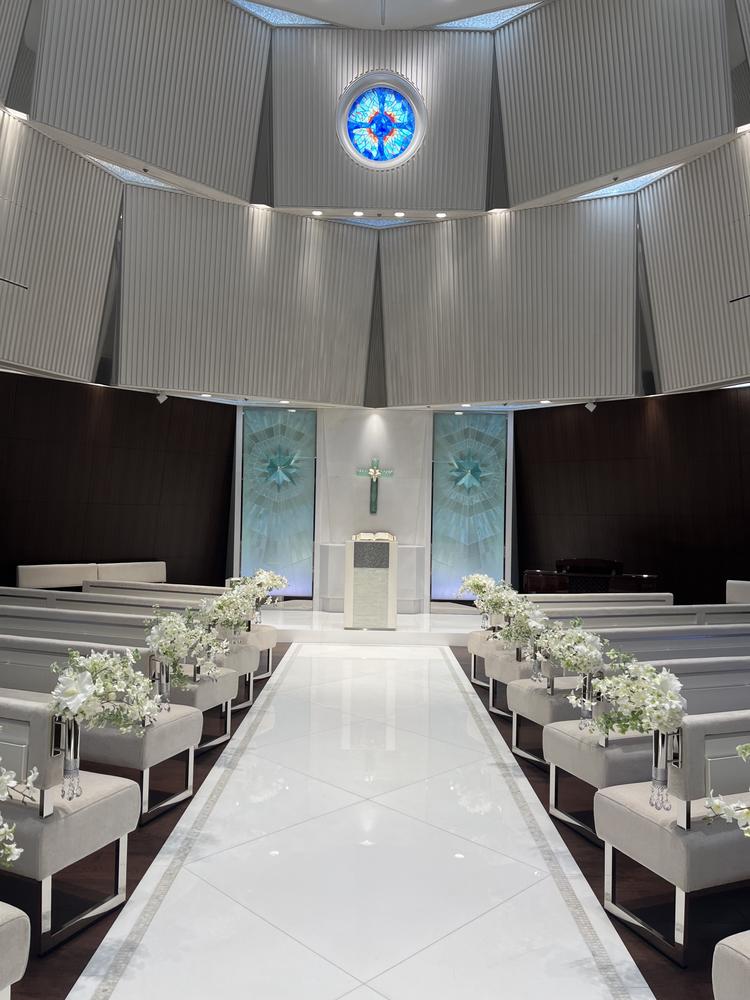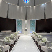 チャペルは白とブラウンで格式があるけど、アットホームな感じがして自分が求めているものでした。披露宴会場の光は白を基調としているので自分の好みの披露宴会場にできそうだと思いました。