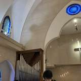 チャペルは入り口上と両サイドにステンドガラスがあります。