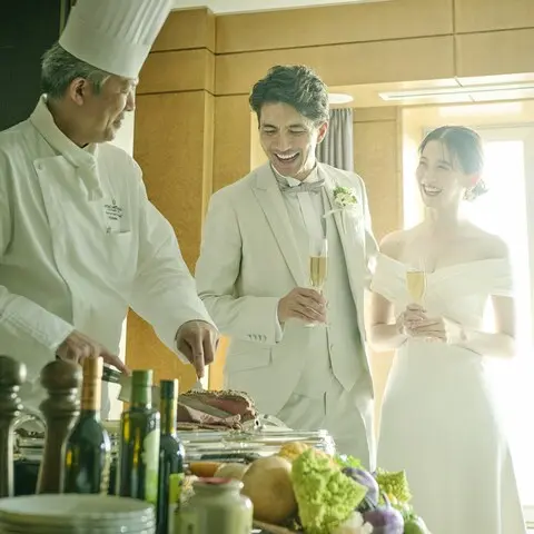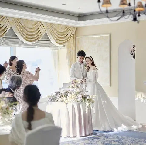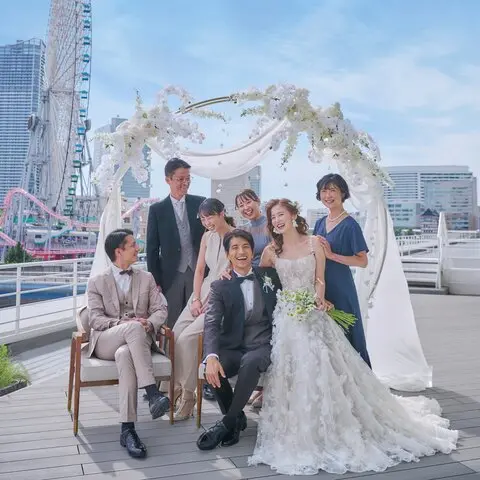 横浜にあるホテル「ヨコハマ グランド インターコンチネンタル ホテル」。祭壇の向こうに広がる海と豪華客船を思わせる空間での挙式。オープンテラスでフラワーシャワーやバルーンリリースも。披露宴会場はシャンデリアが煌めく会場のあるTHE BALLROOM PARTY、ベイブリッジや横浜港を見渡せるTHE CRUSING PARTY、プライベート&ラグジュアリーがテーマのTHE SUITE ROOM PARTYの3つのスタイルに分けられた8会場からおふたりの理想に合ったスタイルでのパーティーが叶います。