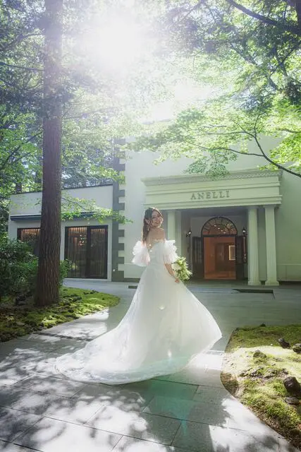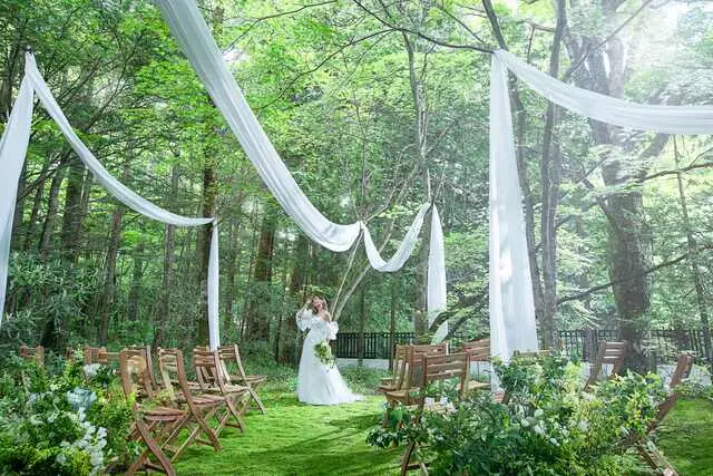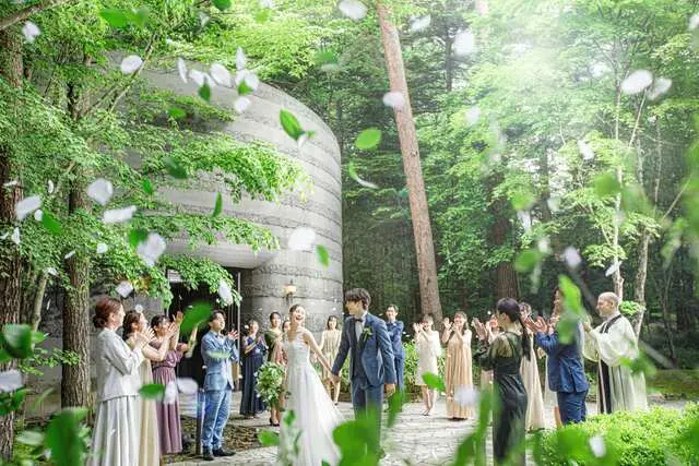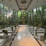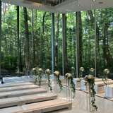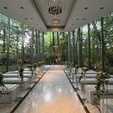 全面ガラス張りのチャペルから森の緑が一面に見え、自然光が入る明るく開放的な空間でした。白を基調とした清潔感のあるデザインで、軽井沢らしいナチュラルな雰囲気でした。披露宴会場もガーデン付きで開放感がありました。