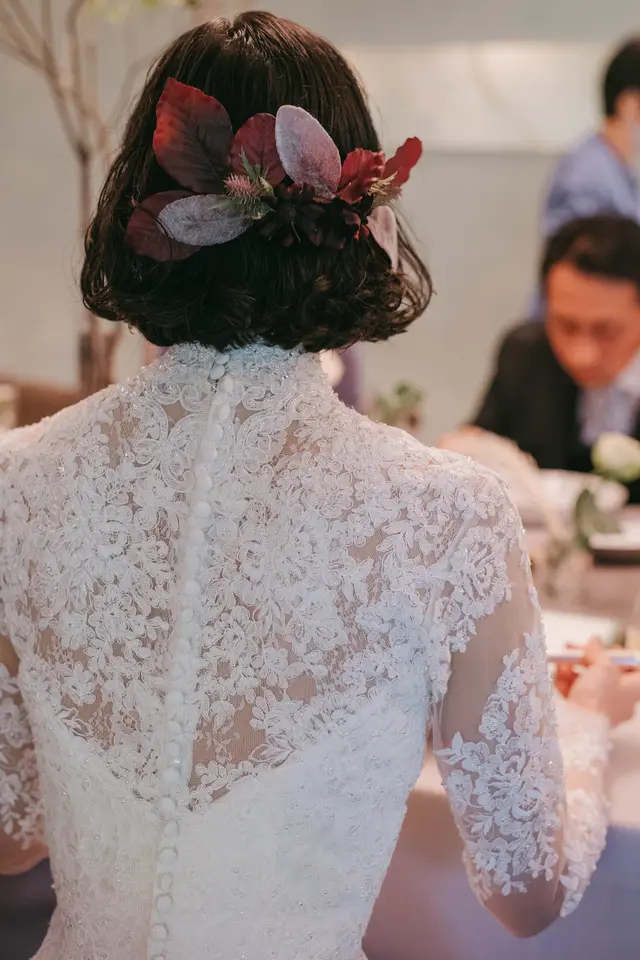 この日を迎えるまでにウェディングを通じてたくさんの出会いがあったそう。素敵だなと眺めていた写真と、こんなイメージにしたいなと感じた卒花さんの写真を撮っていた方が偶然同じ方で、卒花さんから紹介してもらったカメラマンさん。好みを深く理解してたくさん提案してくれたドレスショップのスタイリストさん。SNSで仲良くなり、リクエストのヘッドパーツをつくってくれた方。「また会いましょうとはなかなか言えないけれど、そう思うくらい素敵な方に出会いました」とお話ししてくださいました。