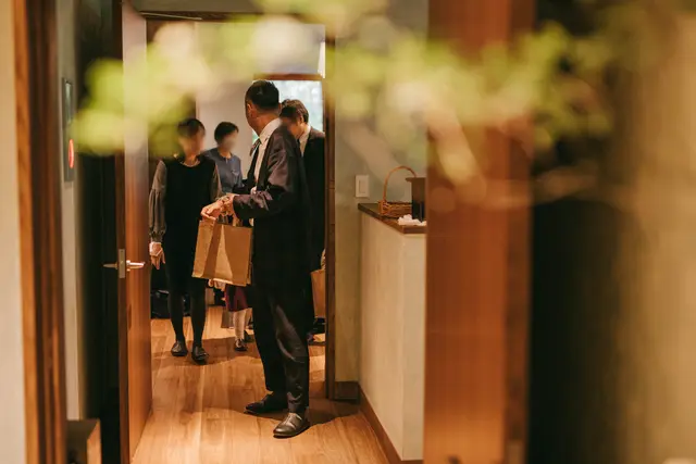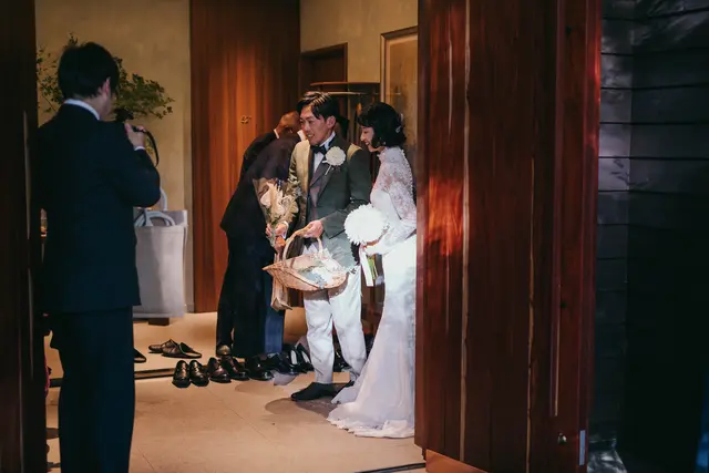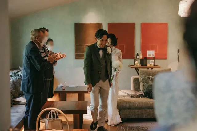お支度が整ったら、おふたりはみなさまのもとへ向かいます。リビングの扉が開き、みなさまとご対面。