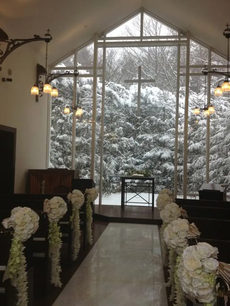 チャペルの景色や、部屋の窓からは外が見えるので見学の時は雪でしたが、それも珍しくホワイトウエディングでキレイでした。