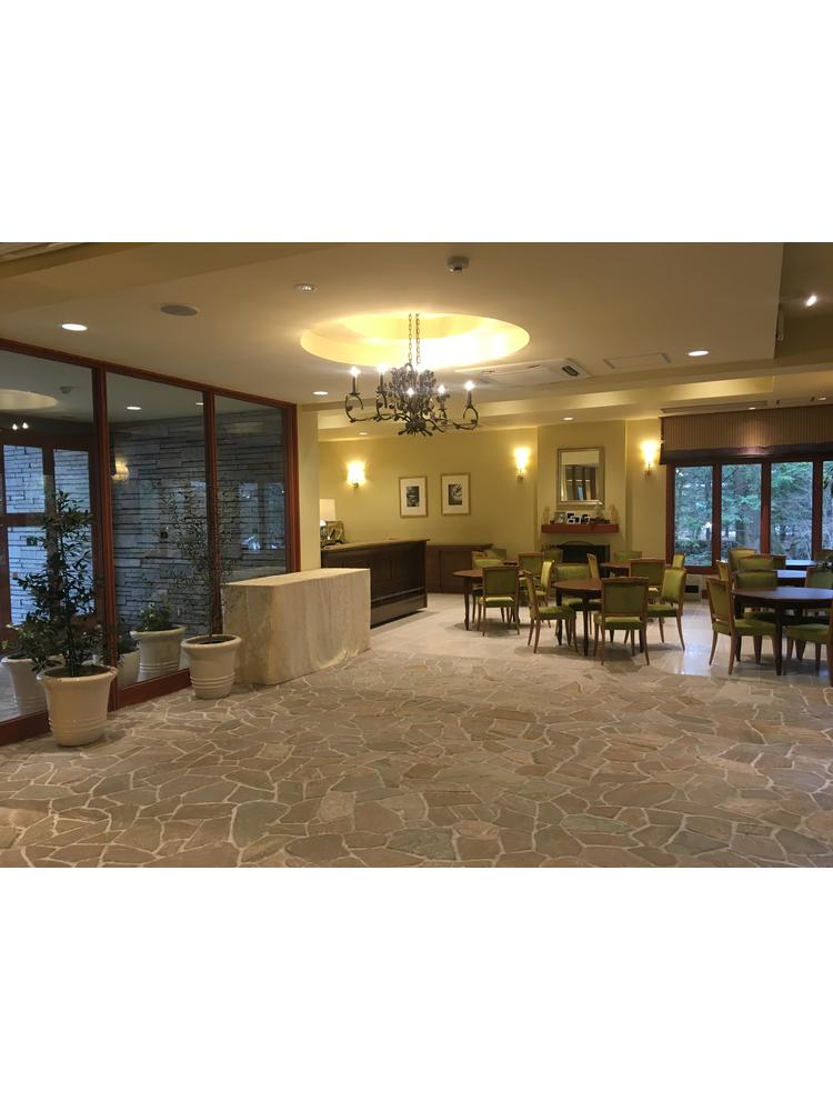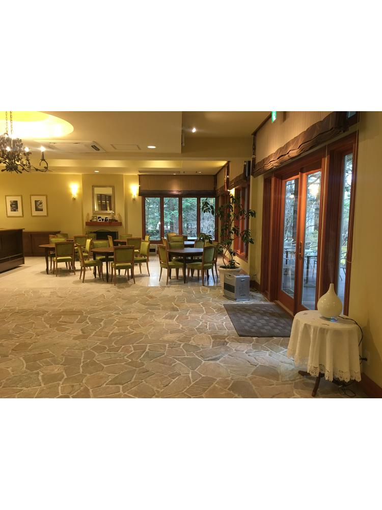 ガラス張りで緑の軽井沢らしい景観が楽しめた。