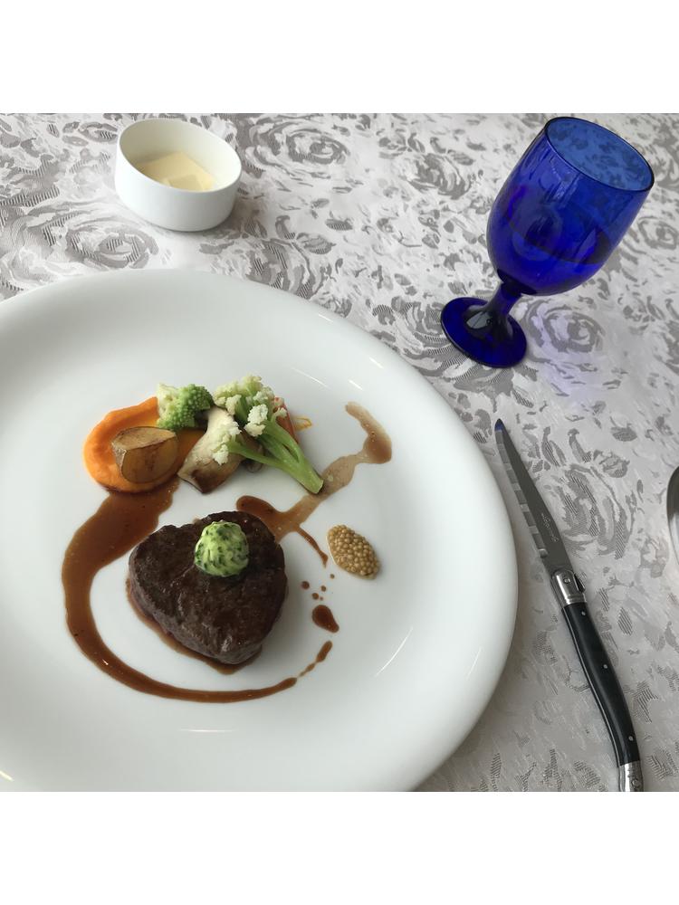 和牛のステーキを最上階でいただきました。とても柔らかくおいしかったです。料理の中に自分たちらしさを取り入れ、アレンジしてもらうことも可能だそうです。
