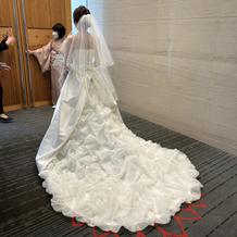 試着の予約は比較的に取りやすかったです。プラン内のドレスを5着ほど試着して決めました。プラン内でもマーメイドにAライン、レースが凝ったものなど種類が豊富で楽しく選べました。新郎の衣装はプラン内では大きいサイズがなくプラス料金になってしまいましたが気に入るデザインがあったので満足しています。