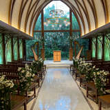 挙式会場は二ヶ所あり、緑に囲まれた雰囲気の会場が素敵でした。そちらの披露宴会場には中庭に大きなプールがあり、きれいでした。公式写真にはありませんが、角度によっては周りの建物が見えるかもしれません。