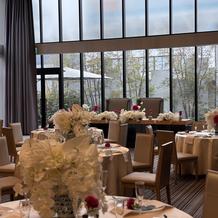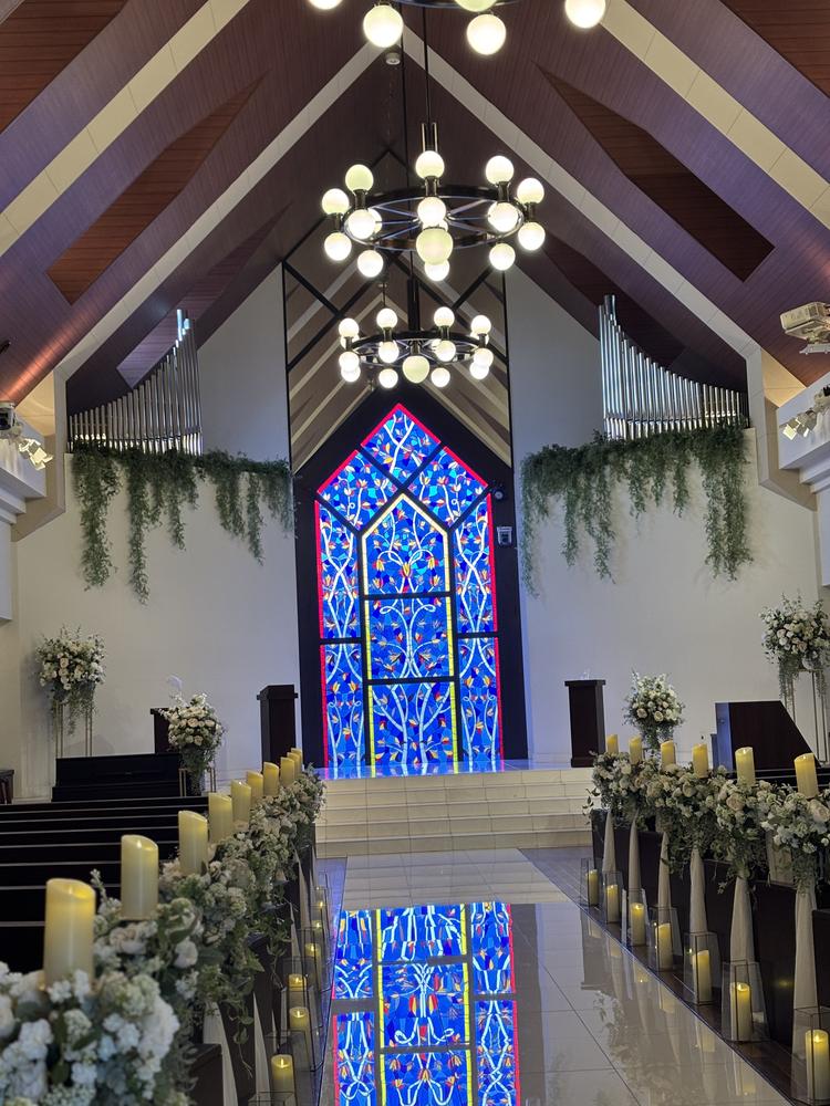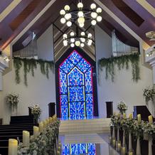 ステンドグラスが素敵でバージンロードも反射して写真も映えました。50名弱で余裕がありました。披露宴会場は階段からの入場ができスタッフの方にゆっくり降りて良いと言っていただき嬉しかったです。