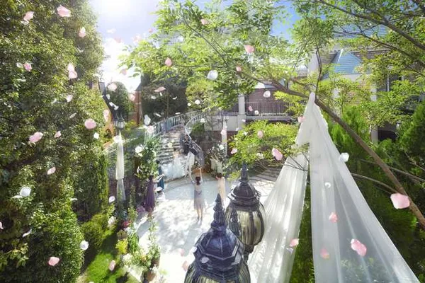 貸しきり空間のガーデンとらせん階段。独立型のチャペルを彩る沢山の付帯設備が特別な空間を演出