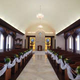 白と木調の温かみあるプロテスタント系の挙式会場でした。曇りの日に下見をしたのですが、明るく、広々と感じました。招待客数が多くても対応できそうです。会場は新しくありませんが、費用次第で装飾に生花を取り入れれば素敵だろうなと思います。豪華さや煌びやかさより、優しさや落ち着いた雰囲気の式場をお探しの方にはおすすめです。
