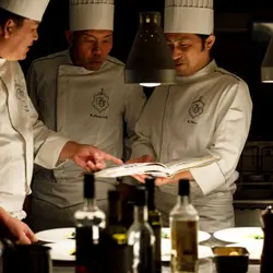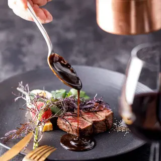 老若男女の誰もが美味しいと感じられる料理を目指し、和洋折衷さまざまな要素を取り入れたコースメニューをご準備。素材ごとに調理法や味付けを吟味し、素材本来の味をシンプルかつ斬新に引き出します。毎年、春と秋に新商品開発も実施し、日々研鑽を積んでいます。