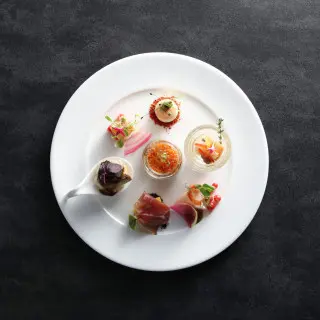 ふたりの人生を紐解いた、世界にひとつだけのオリジナルメニューを。出身地の食材を活用したり、想い出のエピソードをひと皿に表現したりと、特別なゲストへのおもてなしをお手伝いします。また、見た目も婚礼料理における大切な要素。思わず笑みがこぼれるような華やかな盛り付けが、幸せを彩ります。